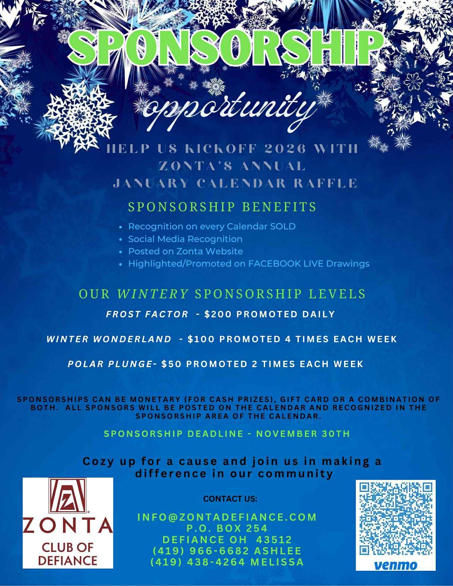 Zonta Club of Defiance is a local chapter of one of the largest women's service organizations in the world, Zonta International. Our mission is simply "To empower women locally, nationally, and internationally through service and advocacy."